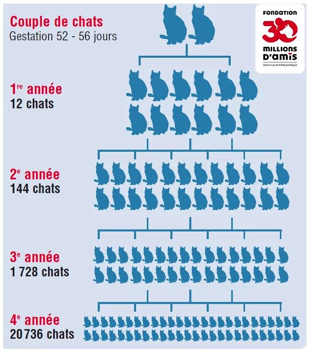 Saviez-vous qu’un couple de chats non-stérilisés peut engendrer jusqu’à 20 000 descendants en 4 ans ? Il est donc impératif de maîtriser la prolifération des chats errants !