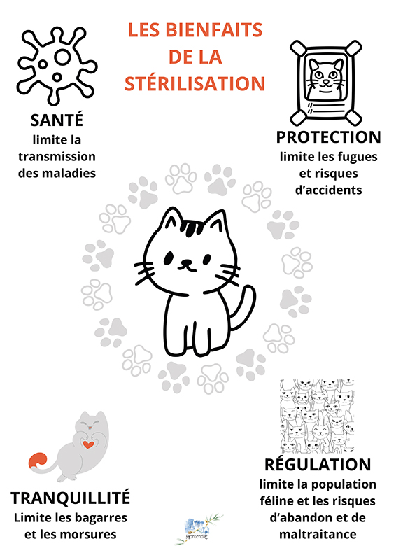 - D’une part, la stérilisation stabilise automatiquement la population féline qui continue de jouer son rôle de filtre contre les rats, souris, etc.