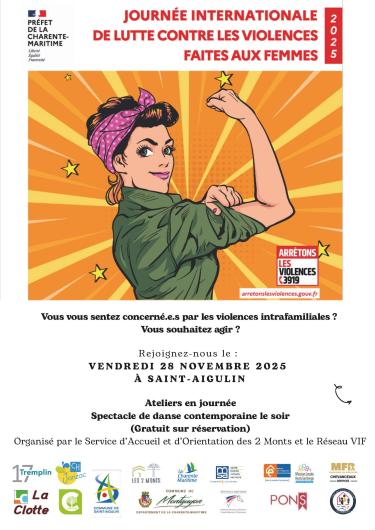 Le Service d’Accueil et d’Orientation des 2 Monts et le Réseau Violences Intra Familiales (VIF) vous invitent à les rejoindre dans cette journée d'information et d'action liée à la lutte contre les violences faites aux femmes vendredi 28 novembre 2025 à Saint-Aigulin.