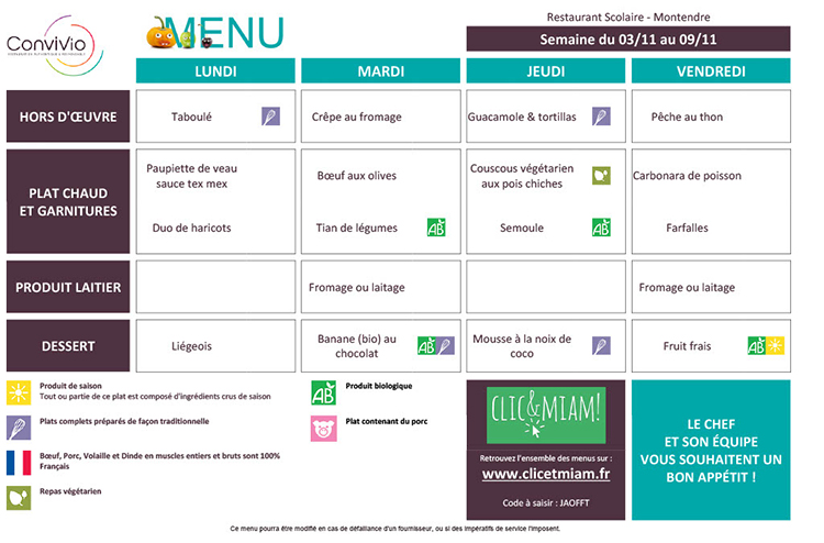 Menus scolaires