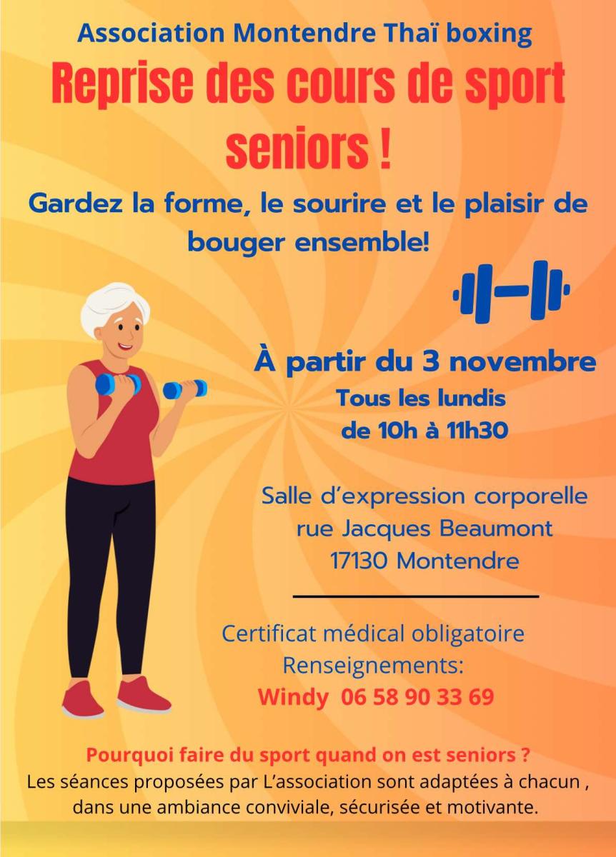 Garder la forme, le sourire et le plaisir de bouger ensemble quand on est sénior, c'est ce que vous propose l'association Montendre Thaï Boxing chaque lundi matin, de 10h à 11h30, à la salle d'expression corporelle, rue Jacques Baumont.