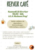 de 9h30 à 12h, LA Maison Pop' 11 avenue de la gareAtelier solidaire de réparations ! électro-ménager, informatique, couture...