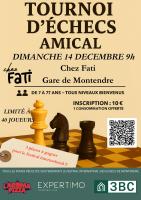 à partir de 8h45 Bar chez Fati, avenue de la GareMontendre Echecs organise un tournoi d’échecs amical ouvert à tous, de 7 à 77 ans